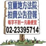 法拍屋公告-宜蘭地方法院公告登報第二次拍賣、第三次拍賣登報、特別變賣(應買公告)、刊登特別變賣程序後之減價拍賣(第四次拍賣)、法務部行政執行署(不動產拍賣公告)(動產拍賣公告)、台灣金融資產服務股份有限公司、第一次拍賣報紙刊登。